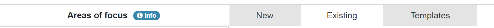 - The ‘Areas of focus’ screen will open. Click on the tabs ‘New’, ‘Existing’ or ‘Templates’ to create a new area of focus, edit existing Areas of focus, or view Areas of focus templates.