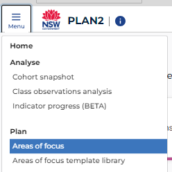 - From the PLAN2 menu (three horizontal lines in the top right corner), select ‘Areas of focus’.