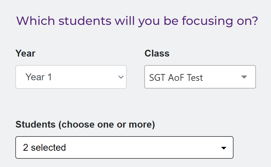 - Select Class or group - if you are using this Area of focus for the small group tuition program, select your SGT group