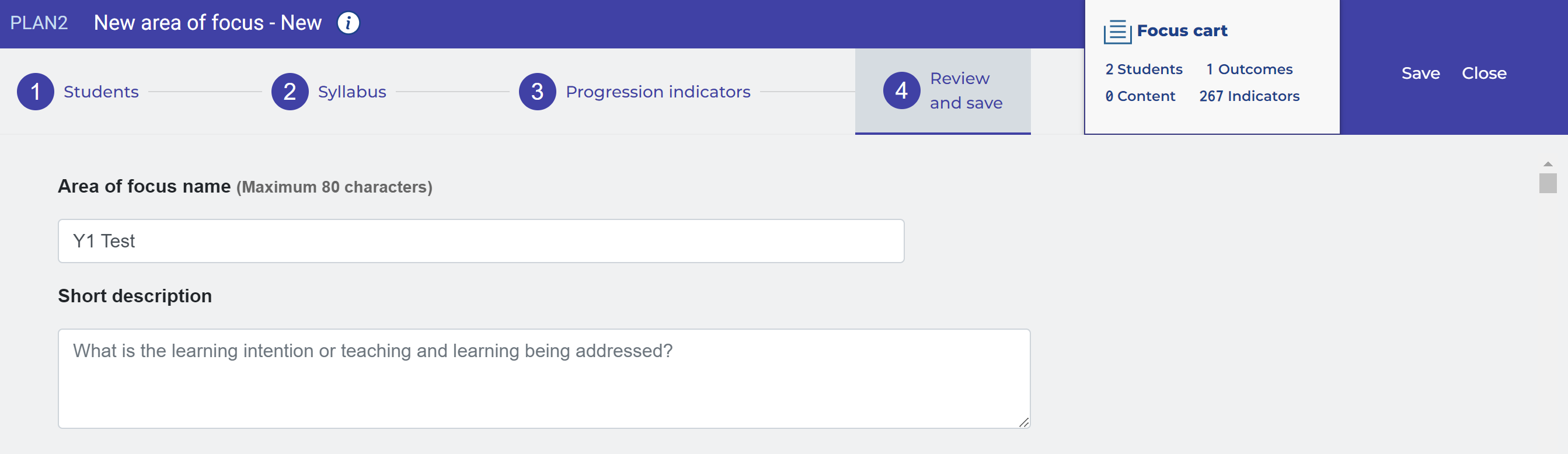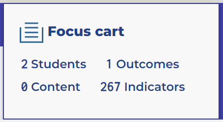 - The ‘My focus cart’ pop-up screen displays the list of student(s), syllabus outcome(s) and progression indicator(s) you have selected so far.