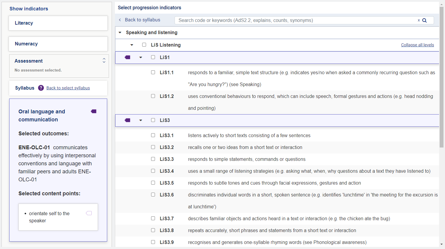 Note: You may skip this step if you do not wish to use syllabus outcomes as guide when selecting your progression indicators.