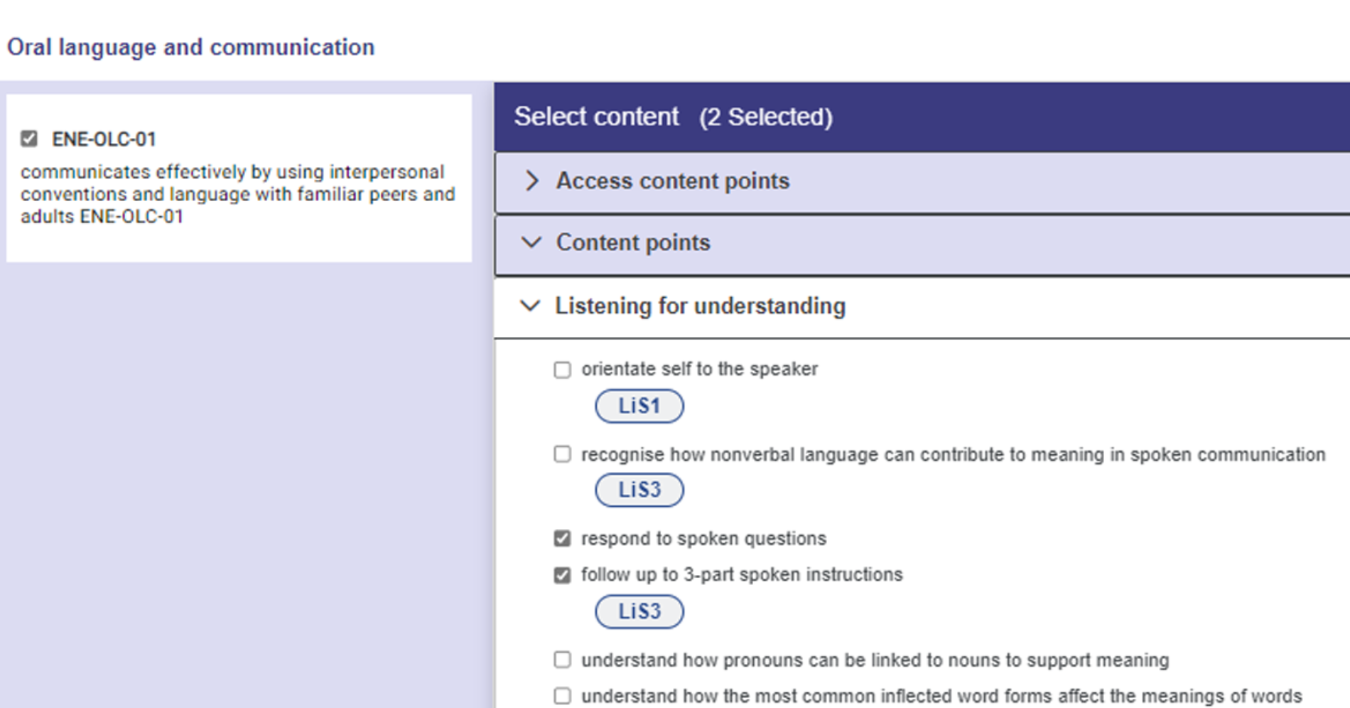 - Select ‘View content’ to view and select one or multiple Syllabus content point(s).