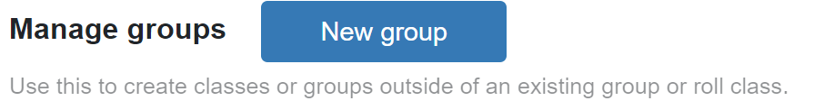 - In the 'Manage groups' screen, click the New button. The 'New student group' pop-up screen will display.