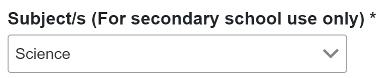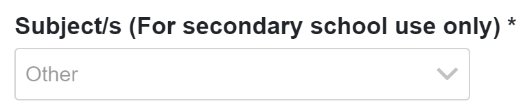 - For central schools: You can select a subject if your selected students are from any of year levels 7-12. If any of your selected students are from year K-6, the default subject will be 'Other'.