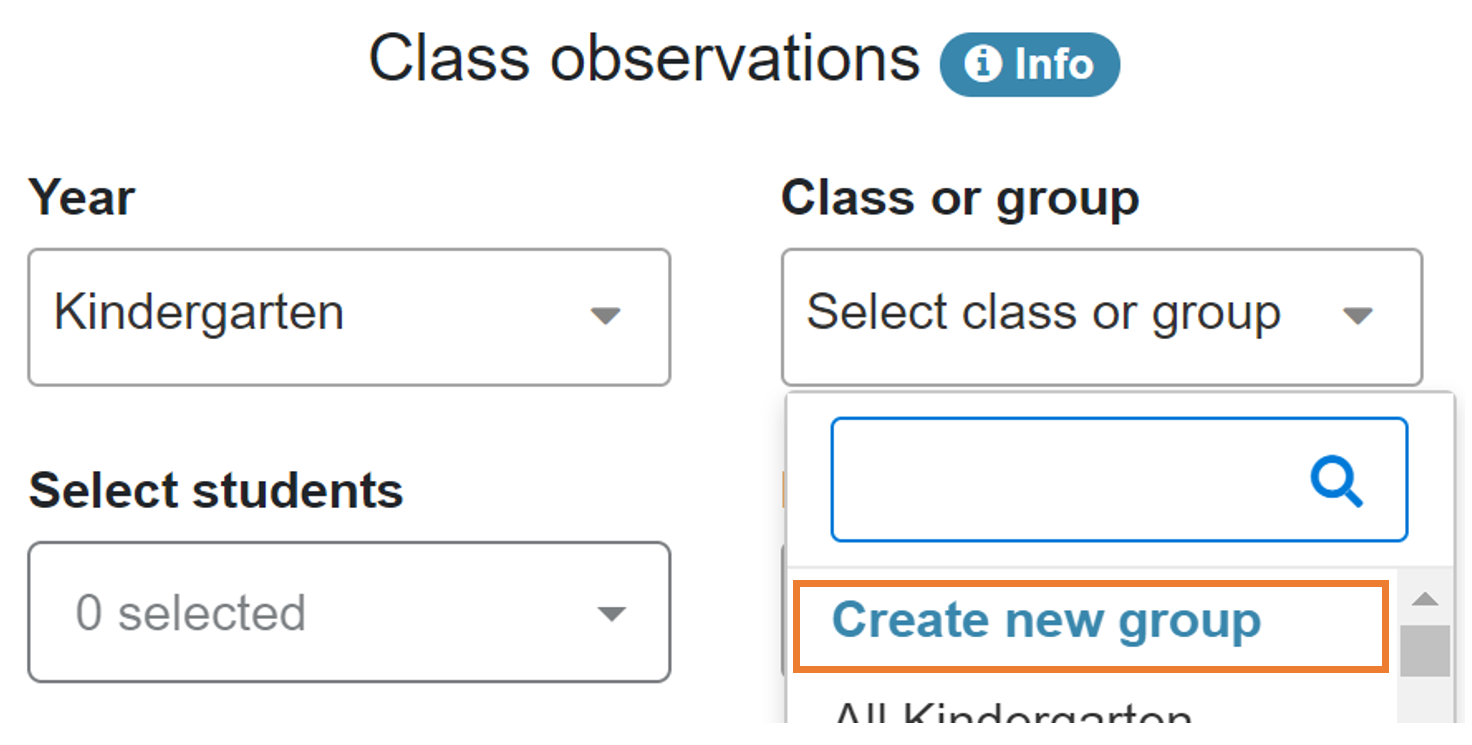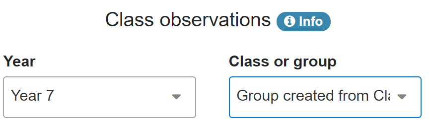 - In the Class observations selection panel, select any Year then click the Class or group dropdown field.