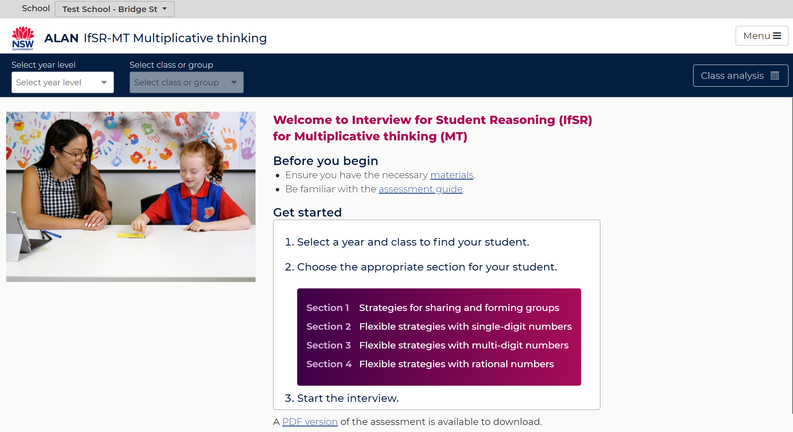 - The Interview for student reasoning for Multiplicative Thinking (IfSR-MT) assessment is available to NSW DoE schools only, via the ALAN suite of online tools.