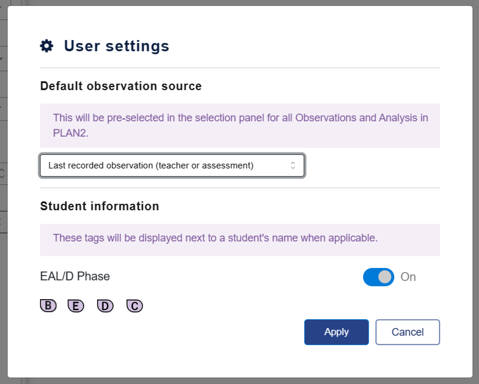 - For further information, please see the PLAN2 English as an Additional Language or Dialect (EAL/D) user guides.